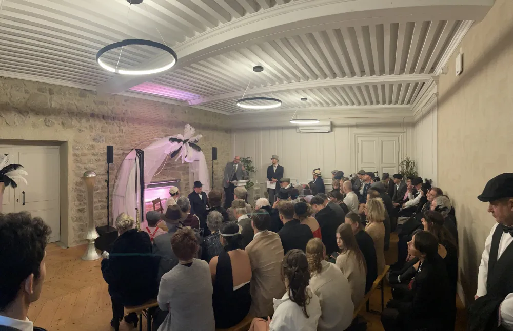 La cérémonie laïque, célébrée en intérieur, s’est déroulée dans un décor inspiré de l’univers scintillant du thème choisi. Entre raffinement, rires et émotions, cette journée a parfaitement mêlé la magie du cabaret à la douceur de l’automne.