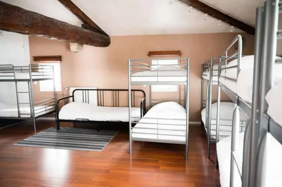 - Un dortoir de 11 personnes (un lit simple et cinq lits doubles superposés).